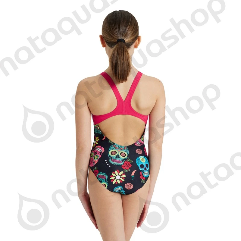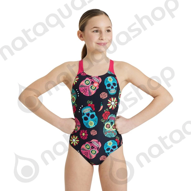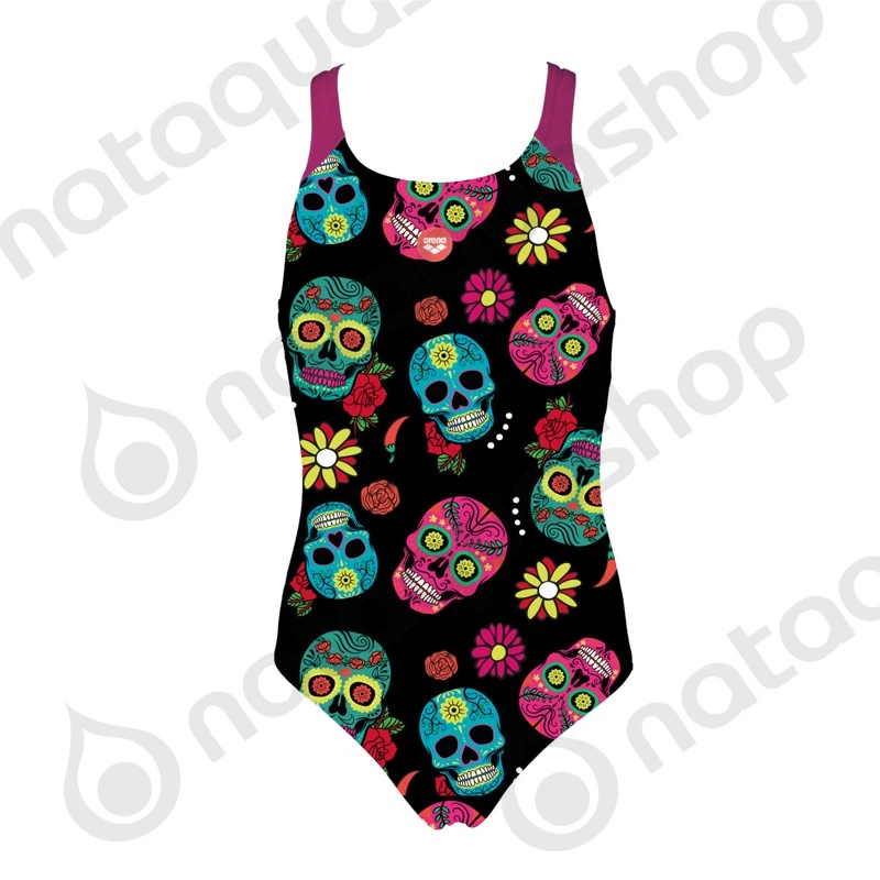 Arborant des couleurs gaies, le maillot de bain pour fille G CRAZY SKULLS CARNIVAL JR SWIM PRO BACK ONE PIECE est doté de bretelles turquoises contrastées. Il est destiné à égayer toute séance de natation récréative. Tissu Lightweight MaxFit est un Tissu de maillot de bain extensible dans lequel votre enfant se sentira très à l’aise. Grâce à sa haute teneur en élasthanne, MaxFit s’adapte parfaitement au corps.