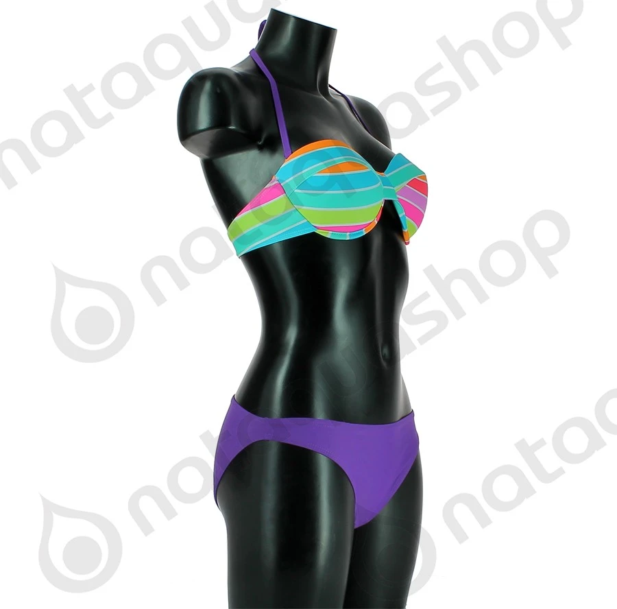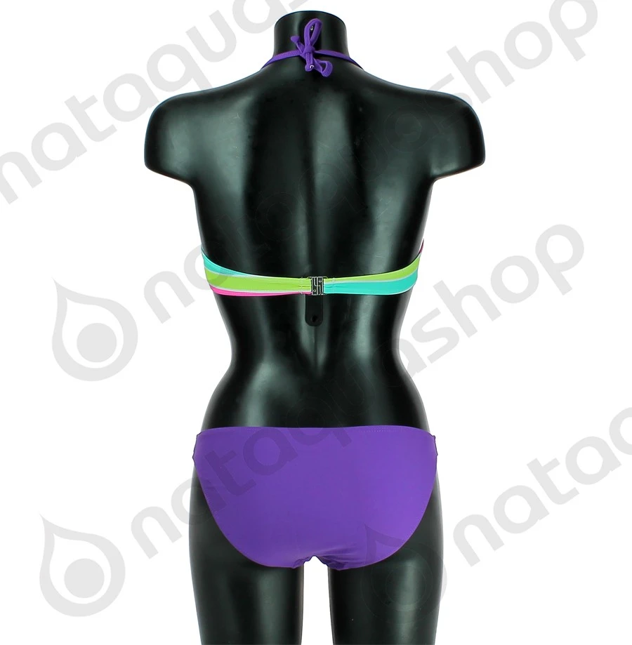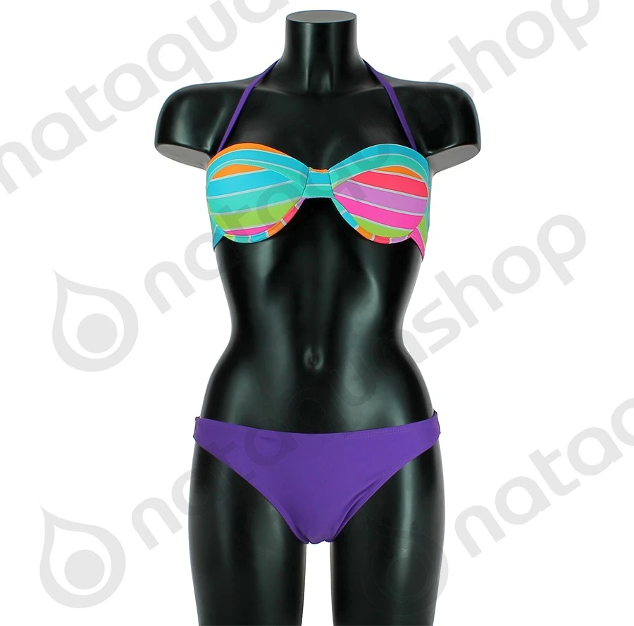 Le BIKINI AROS BAHIA est ultra tendance grâce à ses 2 pièces dépareillées: La culotte, d’un joli violet uni est joliment échancrée. quand au soutien gorge, le design évoque un cocktail de fruits frais sur une plage brésilienne, les orteils dans le sable. La coupe du décolleté le met particulièrement bien en valeur. A glisser dans son beach bag de toute urgence!