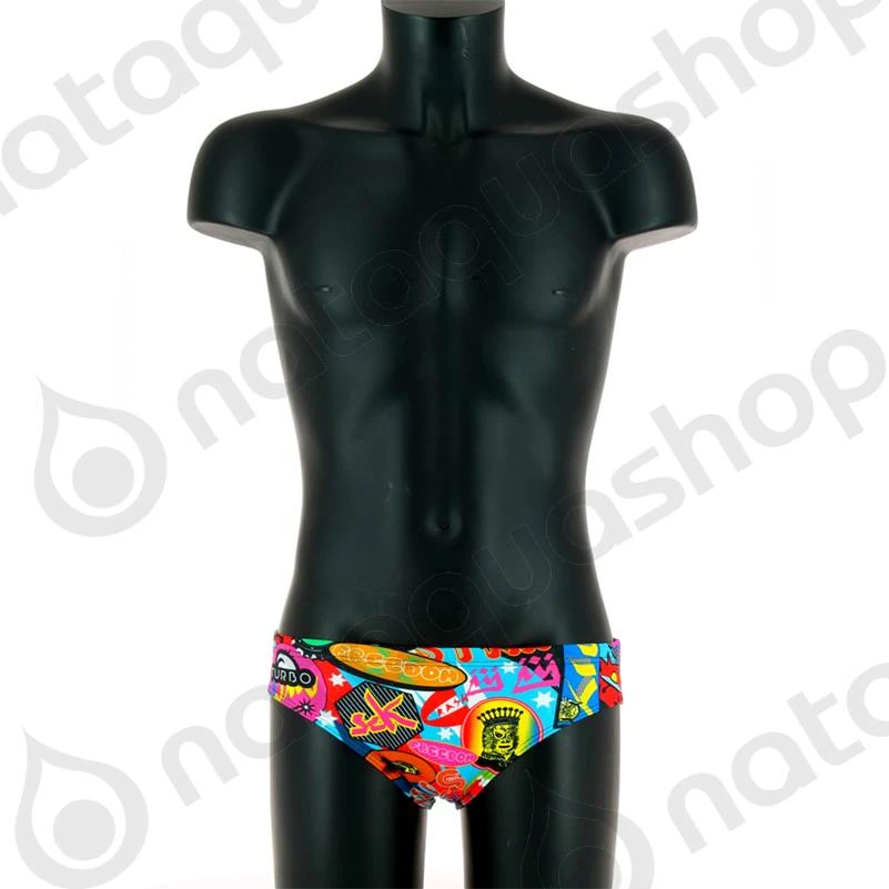 Maillot de bain 100% polyester/PBT de chez Turbo. Très haute résistance au chlore et design original.