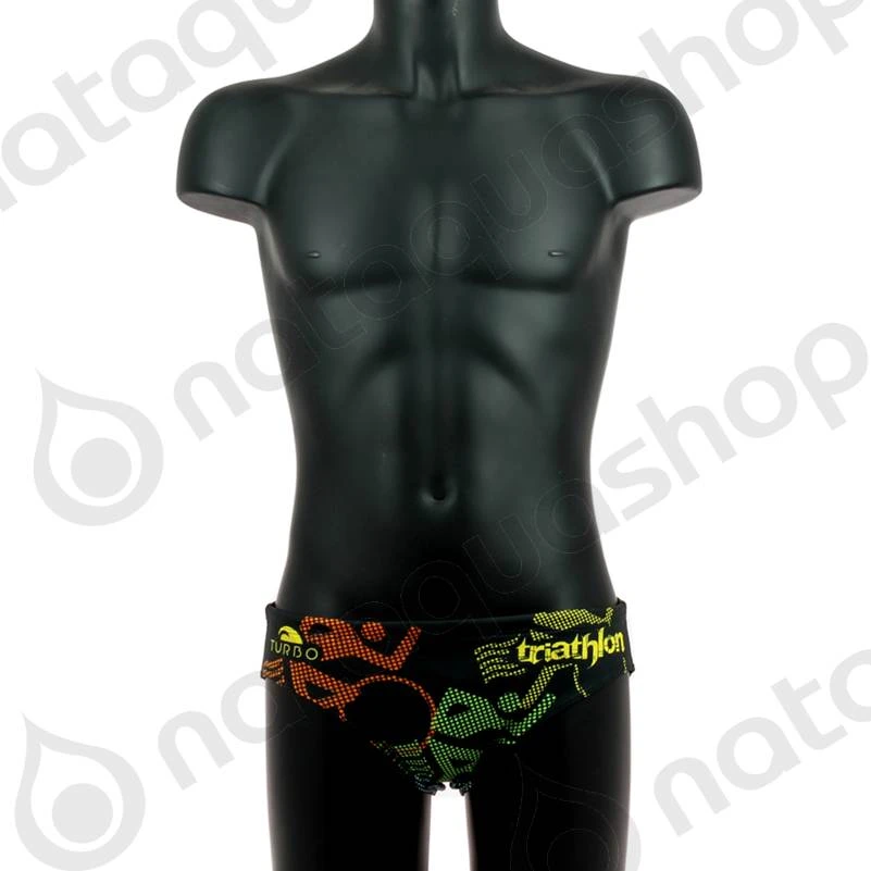Maillot de bain 100% polyester/PBT de chez Turbo. Très haute résistance au chlore et design original.
