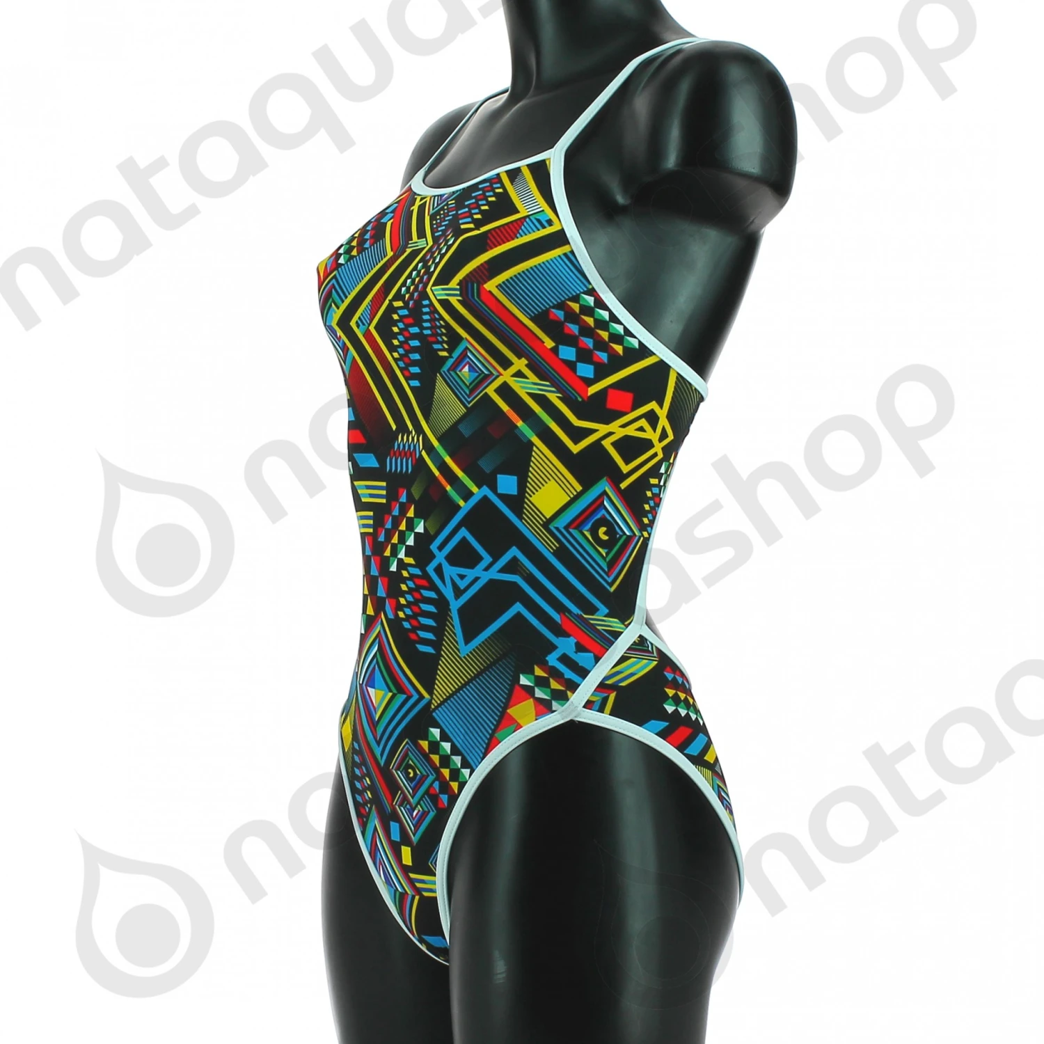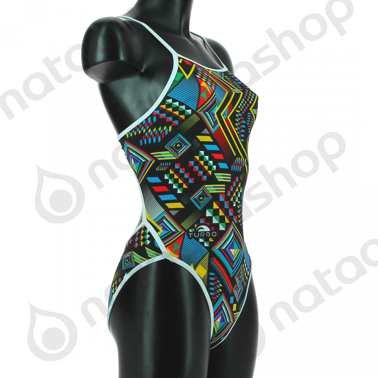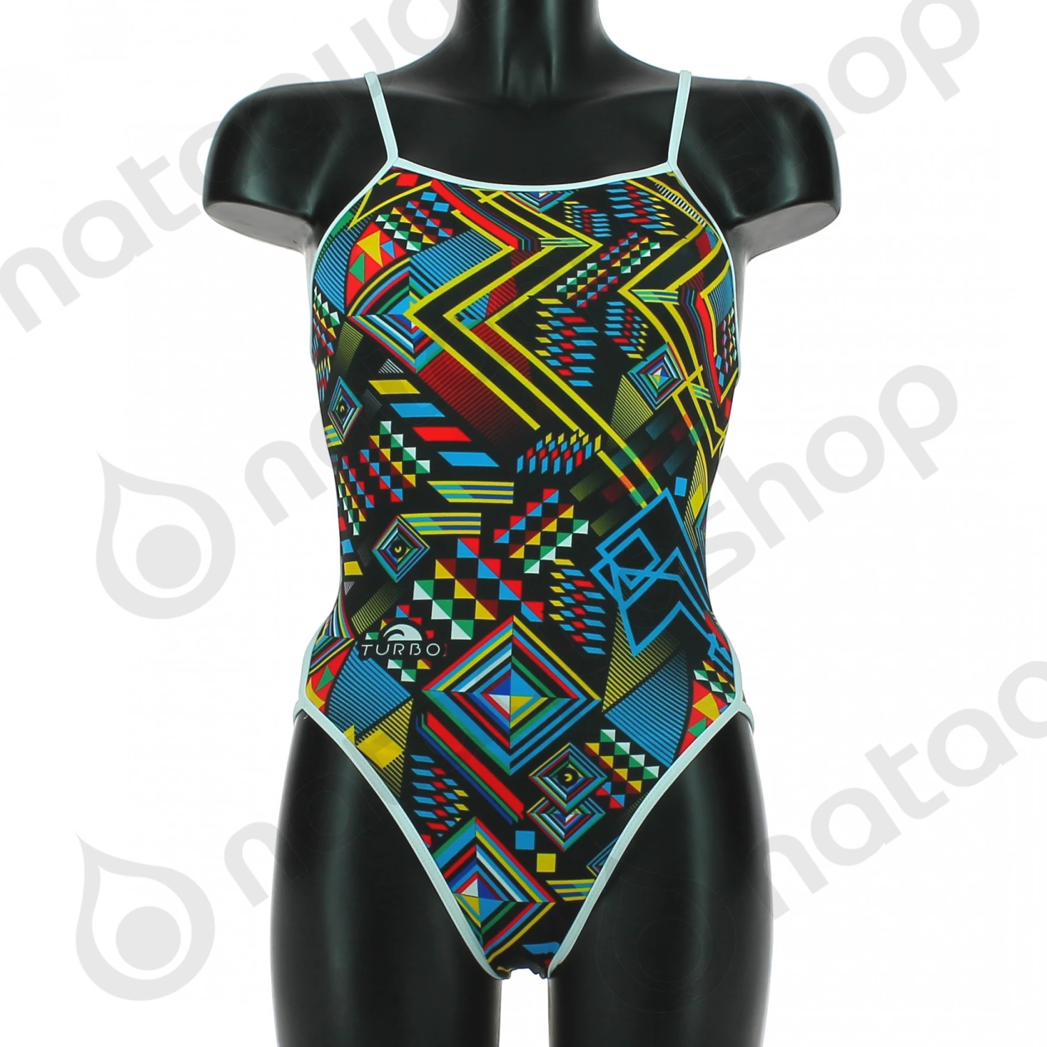 Maillot de bain 55% PBT et 45 % Polyester de chez Turbo. Très haute résistance au chlore et design original.